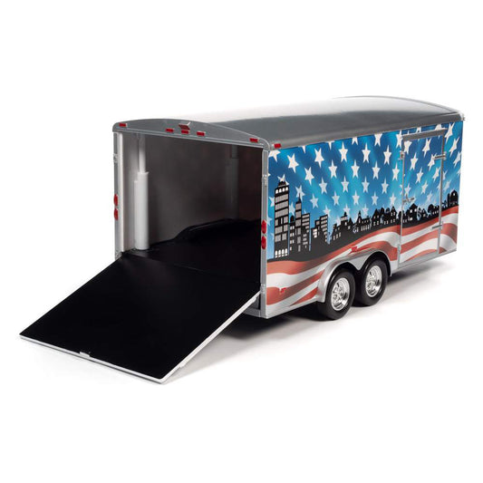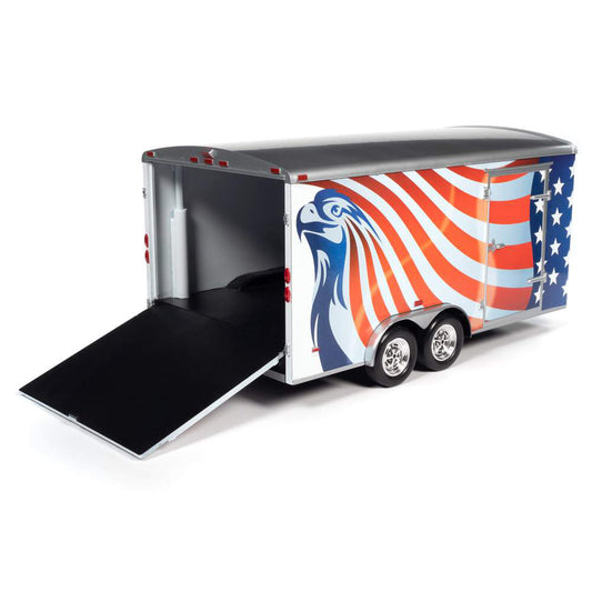 1:18 Scale Bumper Pull Enclosed Trailer "Brave & Bold" (Red/White/Blue)