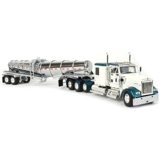Kenworth W900L Tri-Axle w/Polar Deep Drop Tanker Trailer "TCT" (White/Teal/Chrome)