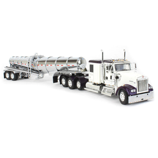 Kenworth W900L Tri-Axle w/Polar Deep Drop Tanker Trailer "TCT" (White/Violet/Chrome)